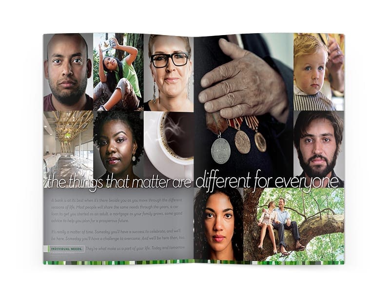We recently had the pleasure to produce the Generations Bank Annual Report. But it could have been called a Perennial Report instead because the majority of the message revolved around the values that haven’t changed from year to year—or from century to century for that matter. Each spread in the report highlighted those values and the people that were helped through the programs that the Bank champions in local communities.