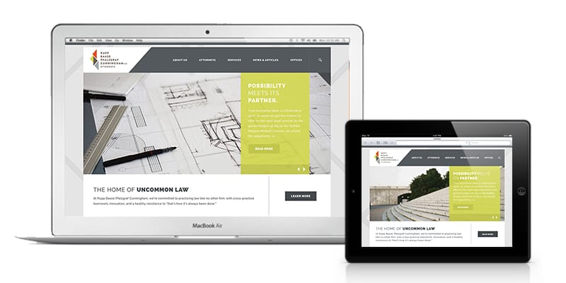 After TMG successfully rebranded Buffalo law firm Rupp Baase Pfalzgraf Cunningham LLC, the next step was to follow up with a new website. To tackle the changing needs of the legal industry, the site is fully responsive – meeting the unique requirements of mobile, tablet and desktop/laptop platforms without compromising the user experience. To match… Read more