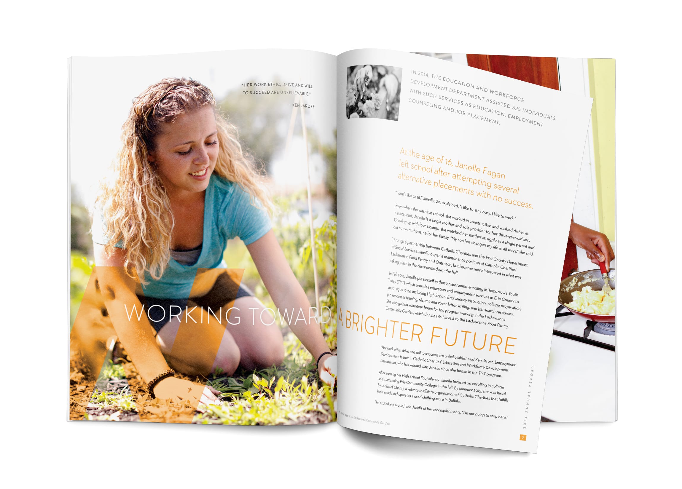 Once again, The Martin Group is producing the annual report for Catholic Charities of Buffalo (CCB). For the 2014 report, the overriding theme was “change,” as illustrated by the remarkable transformation of lives facilitated through the organization’s intervention. Utilizing CCB’s four main brand colors as a unifying design element, four client success stories were told,… Read more
