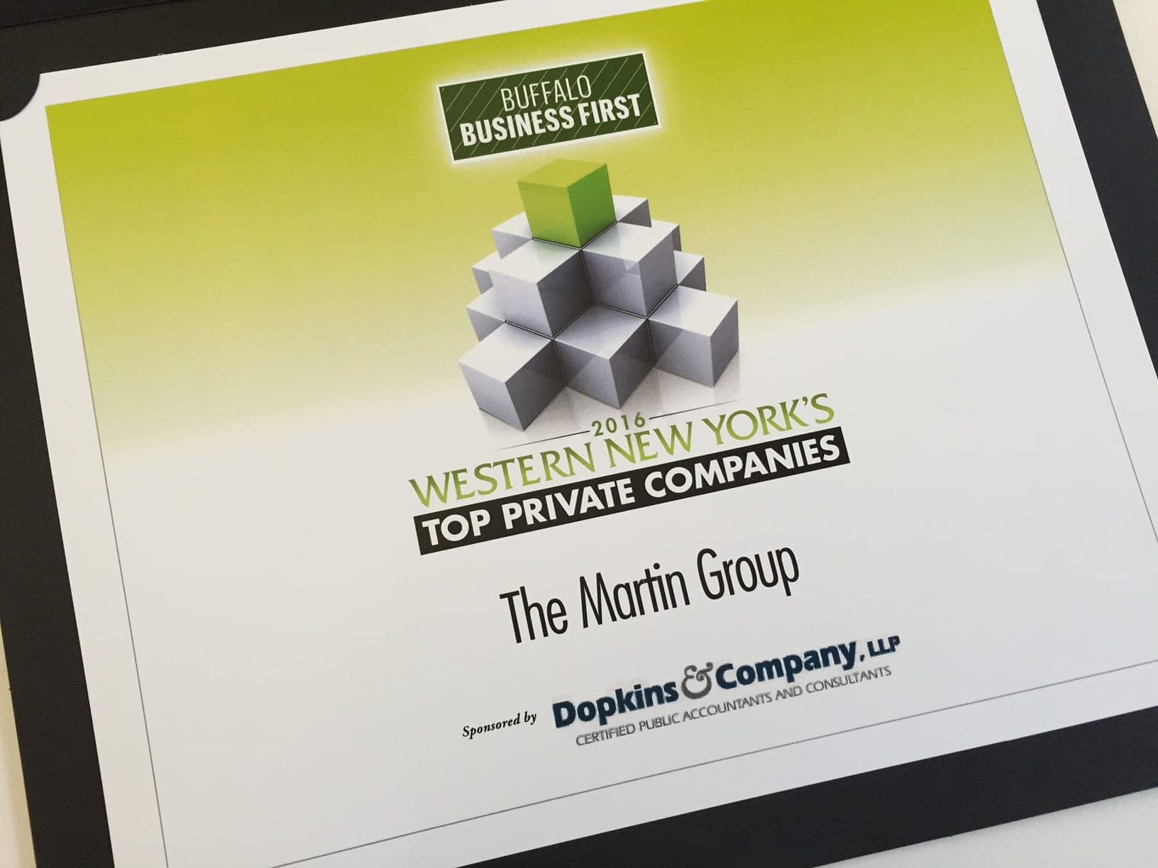 TMG is proud to announce its recognition by Buffalo Business First as one of WNY’s 2016 Top Private Companies. The list honors the region’s top privately held companies with revenues of at least $5 million beginning in 2012. The Martin Group was previously named to the list in 2011, 2014, and 2015. “It is an… Read more
