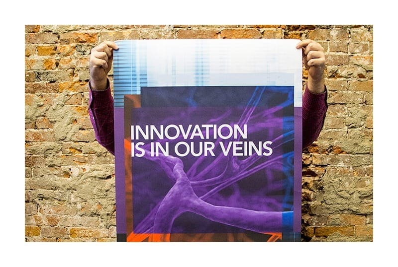 Already pleased with the look of the brand TMG developed for them, Vention Medical tasked us to create 24” x 36” posters that would be used throughout their facilities. We had to come up with 15 concepts that would be presented to the Vention Management Team. Their mission was to show “who they are” with strong, artistic graphics and to not solely rely on verbal messaging. Luckily, they were open to doing a more artistic, visual approach and were flexible with how literal the graphics could be, in a compliance perspective. Staying consistent with the purple, red and gray design we created, we showcased how Vention is a leader in servicing all three components of manufacturing (Design & Development, Advanced Components, Molding & Assembly).