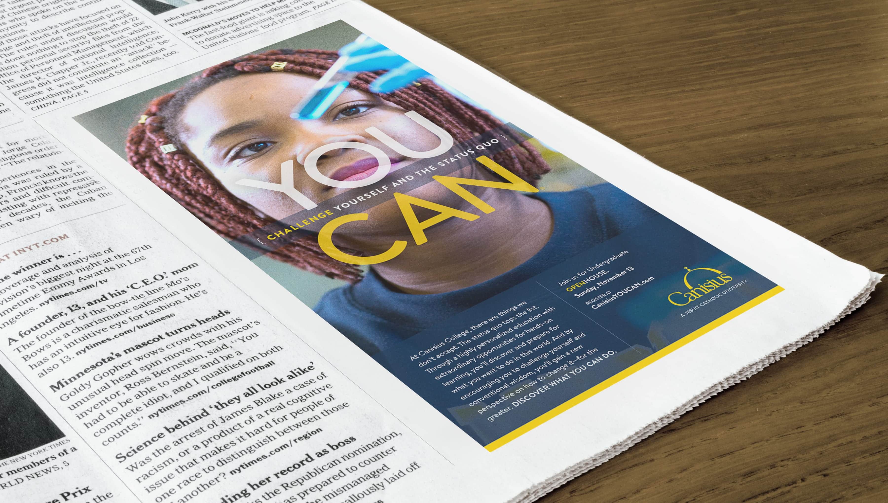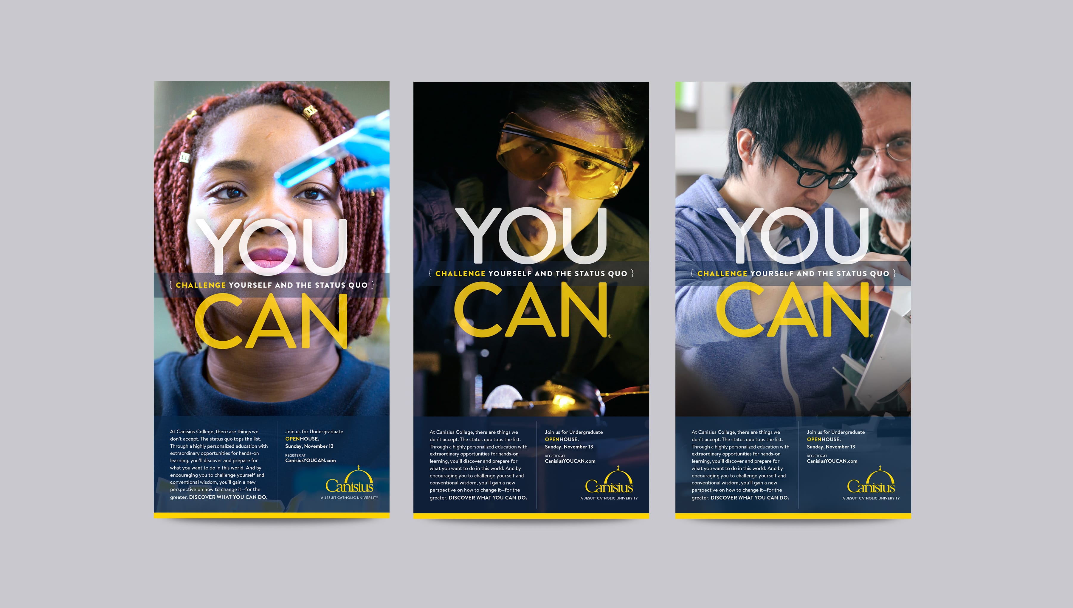 The new campaign was born out of research indicating that prospective students are particularly interested in hands-on, real-world learning they can apply to their future career. Guided by the inspirational primary message of “You Can,” we were able to emphasize the amazing things a Canisius education does for students while zeroing-in on the everyday moments and accomplishments that transform them and help them to discover who they truly are.