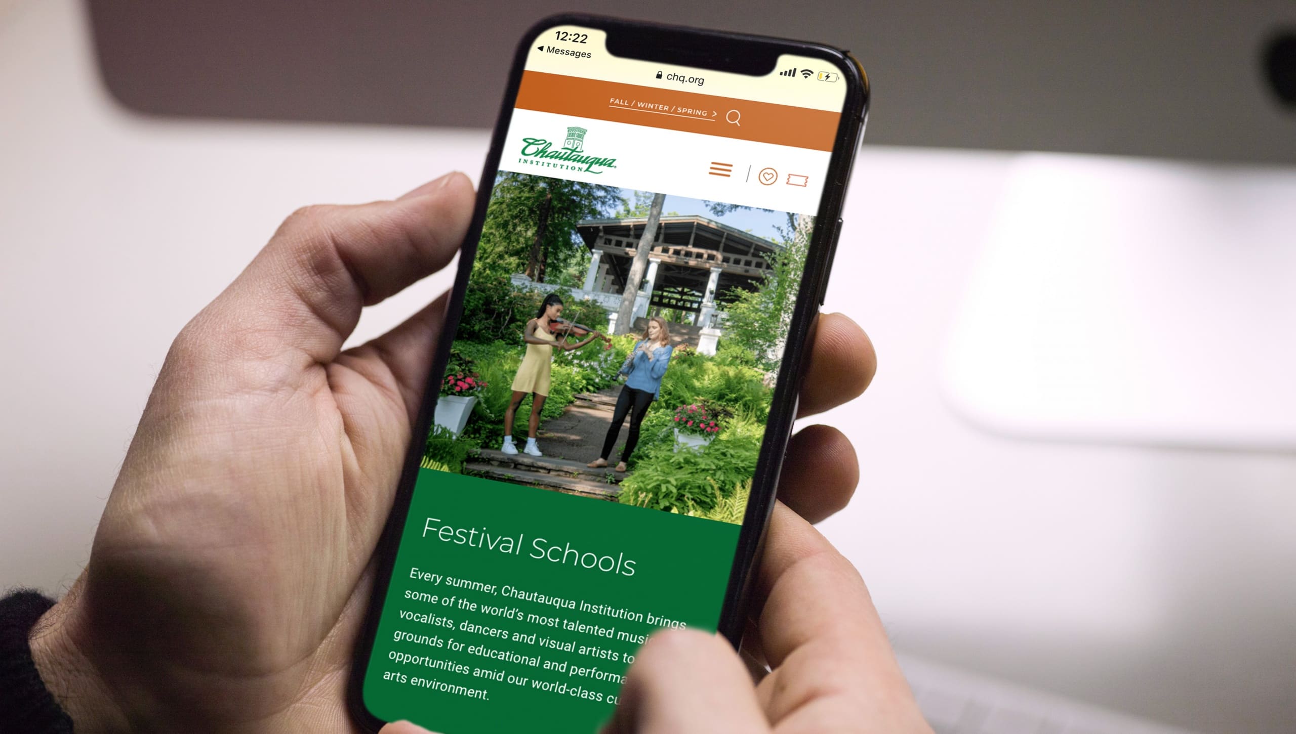 The UX research also informed the clean and simple, yet poised, design. Light features with pops of bold brand color and imagery allow the joy Chautauqua brings to come to life. And with user experience comes accessibility. Accessibility is important to Chautauqua, so the design went through heavy ADA compliance testing and optimization. This was necessary to ensure a smooth interaction with all types of users on the website.