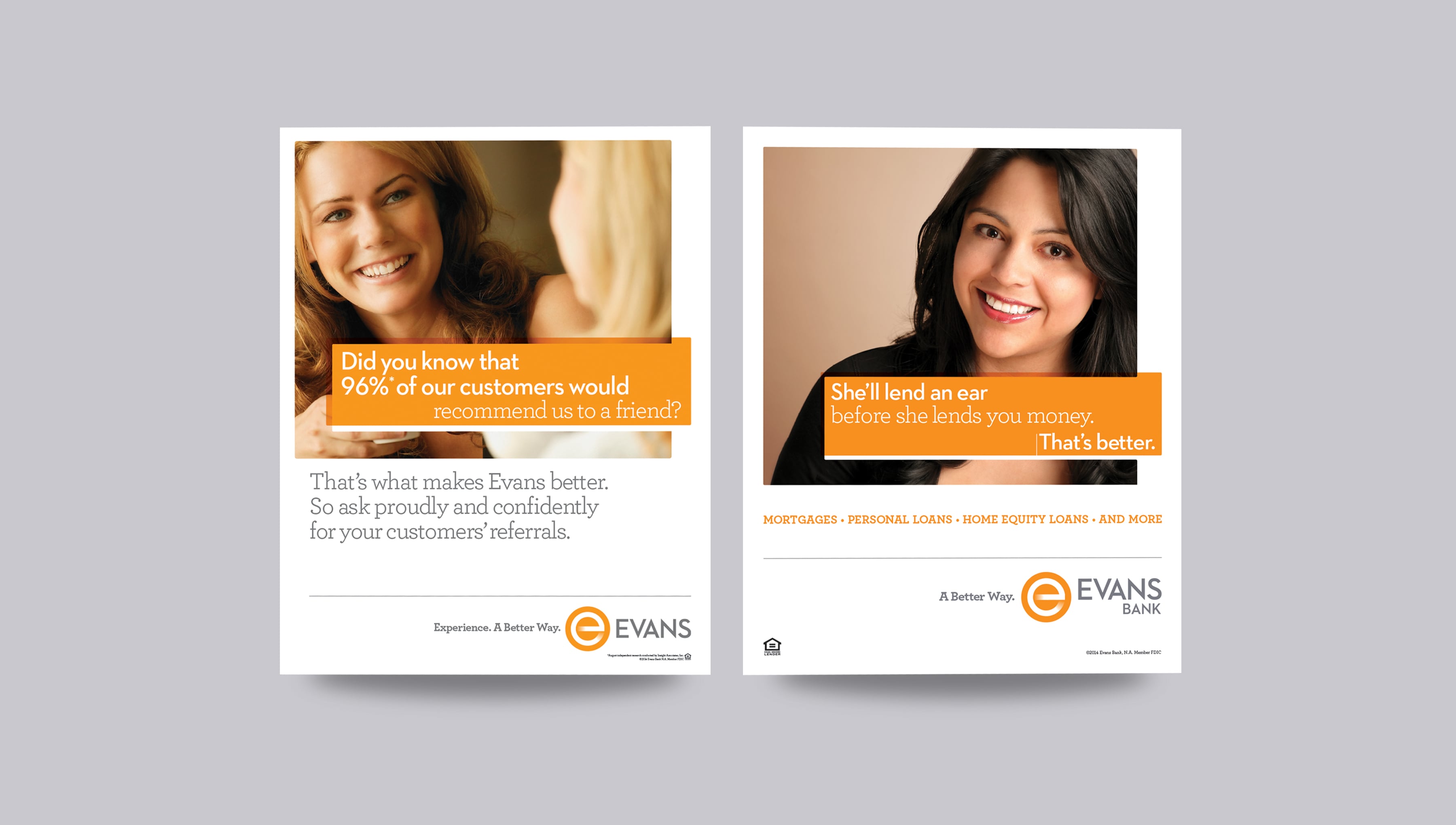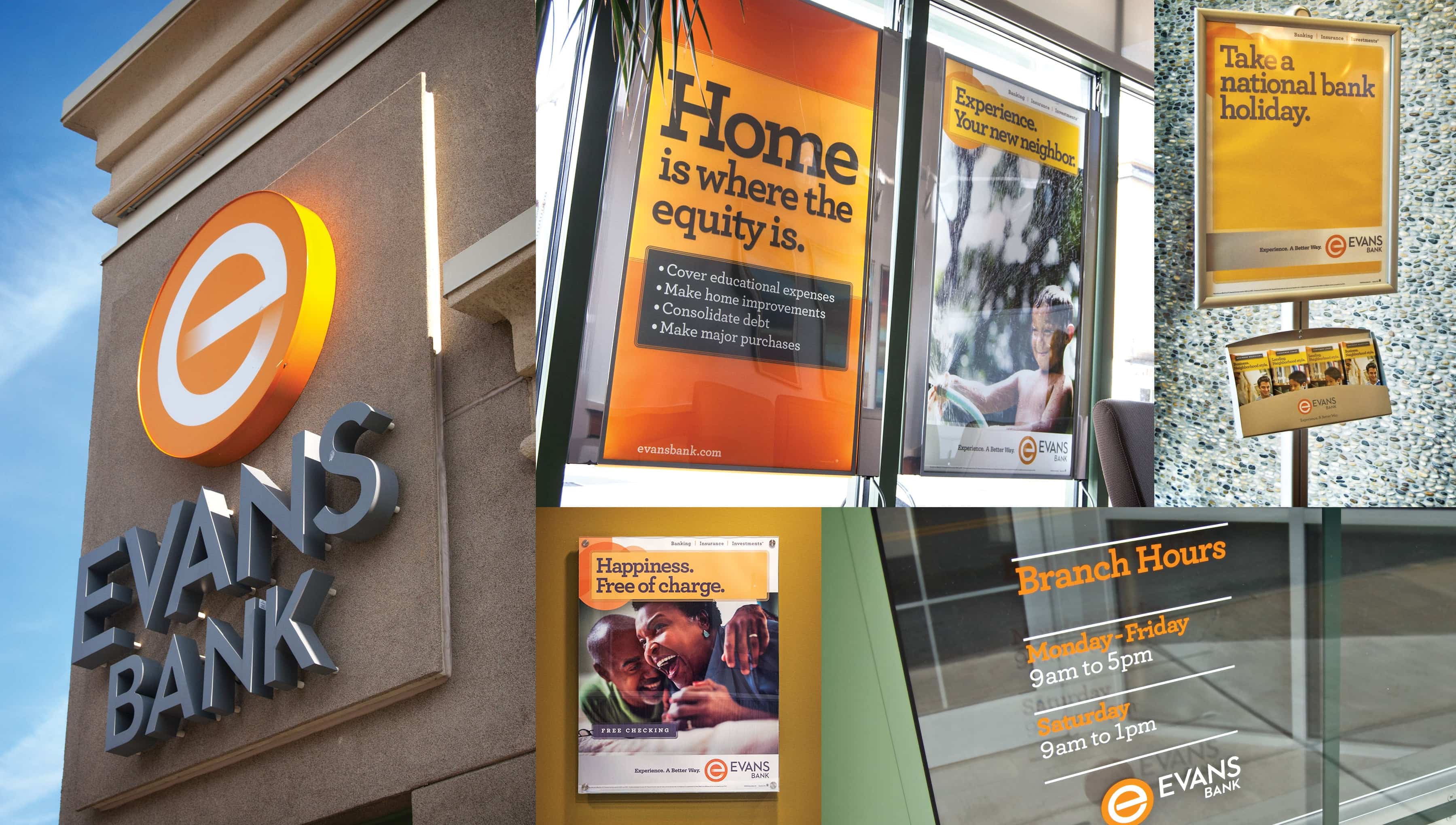 We completed a full-scale rebranding project, complete with three phases of research, including IDIs, focus groups and market awareness research, to tell the story of Evans’ unique combination of personal service and comprehensive financial solutions, while positioning the bank for successful expansion beyond Western New York’s Southtowns. The original rebrand included a new, shortened name (from Evans National Bank), the development of a more modern logo and tagline, a full suite of collateral materials, and a fully integrated advertising campaign to put the bank’s distinctive story in the local spotlight. Since rebranding, we’ve also infused the new brand into the bank’s physical environments, using key touchpoints like in-branch signage, ATM kiosk graphics and strategic promotions for new financial center openings. In addition, when new banks bought out other bank chains, we took full advantage of the acquisitions, targeting displaced customers who were looking for a better way of banking.