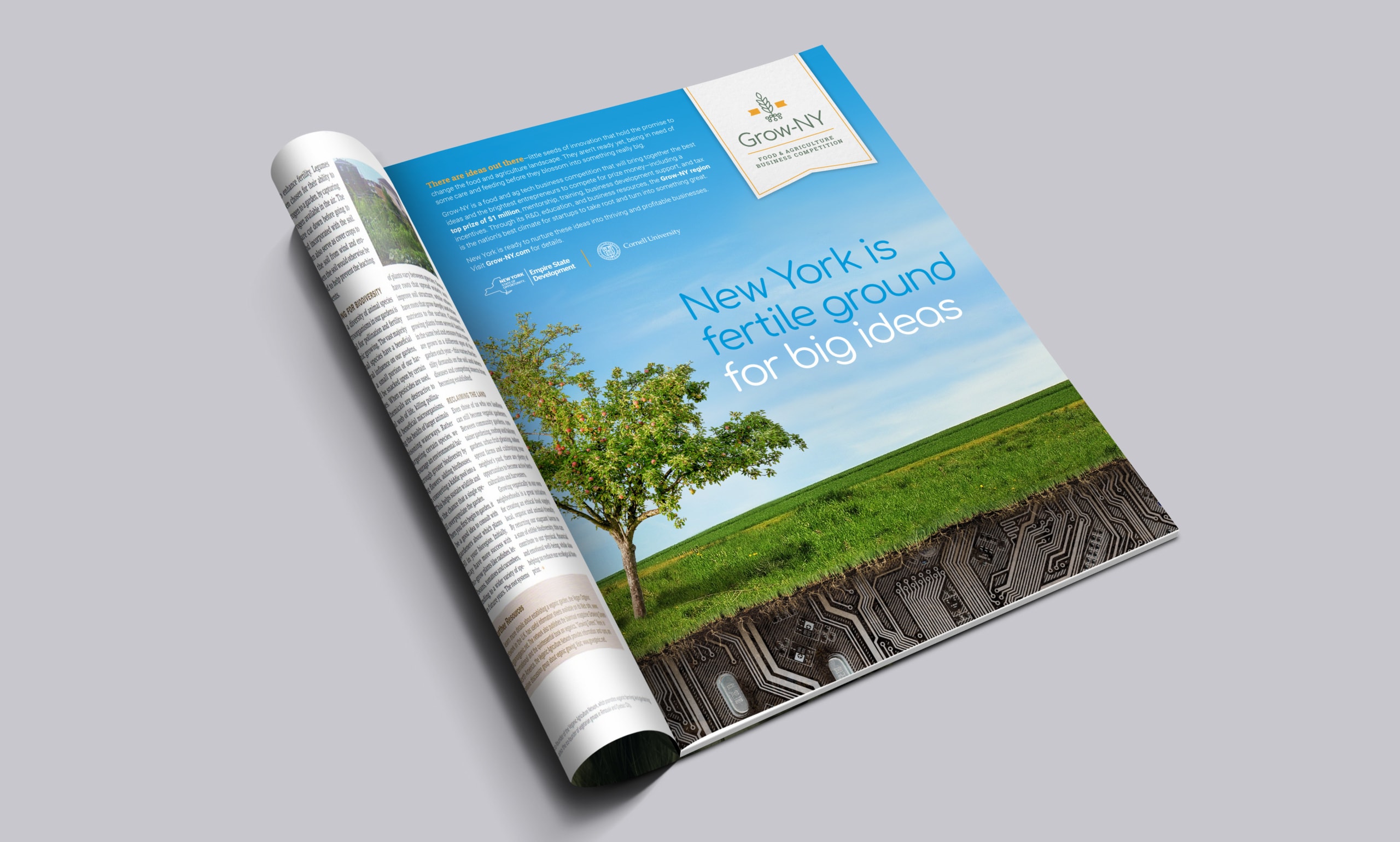 The goal of the competition was to identify, attract, support, and ultimately fund top innovators and technology startups to help make NY their new home for operations. But, with no brand awareness and a short turnaround time, could the “Grow-NY” inaugural competition be successful in drawing a diverse range of entrepreneurs to the emerging food, beverage, and agriculture hub brewing in Central New York, the Finger Lakes, and the Southern Tier? We realized that the key to convincing entrepreneurs of the region’s unique benefits lay in the nature of the state and the region itself—a mixture of old and new, tradition and innovation, agriculture and technology.