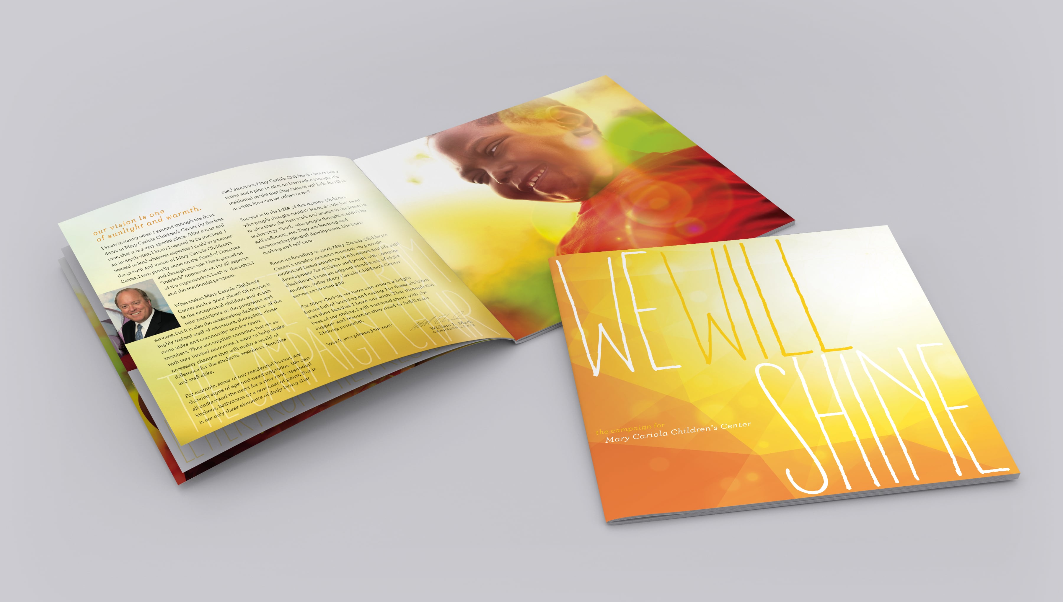 But the common need they all share is money—funding for everyday necessities, unexpected needs and special improvements. We leveraged the brand elements we previously created for Walking on Sunshine as we crafted the materials to support their $5 million capital campaign. The We Will Shine case statement asked for the community’s support for a variety of necessary projects. And as a unique and heartfelt thank you to donors, we designed a template for individual paintings that allowed the remarkable kids of MCCC to paint and let both their creativity and their appreciation shine.