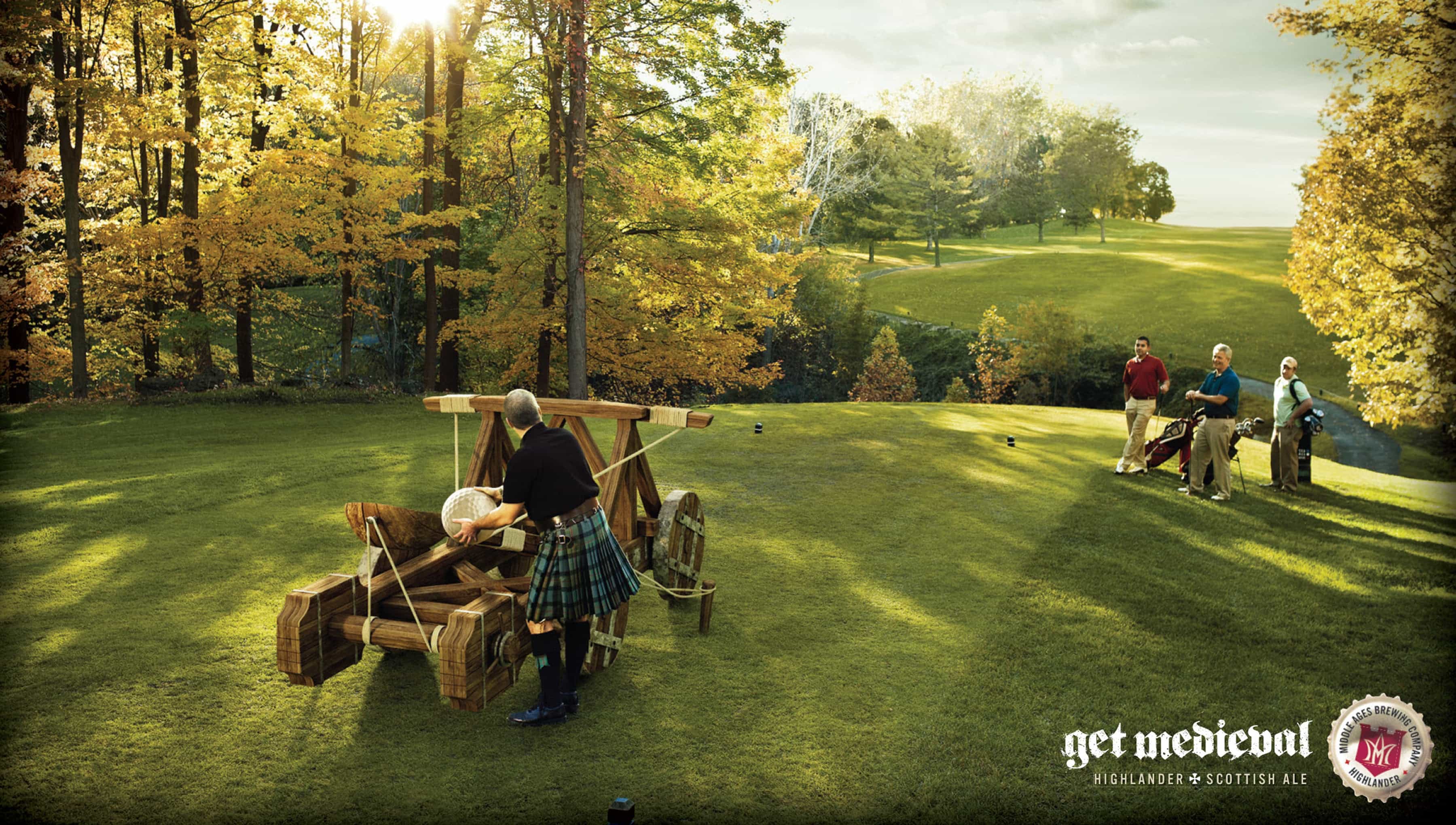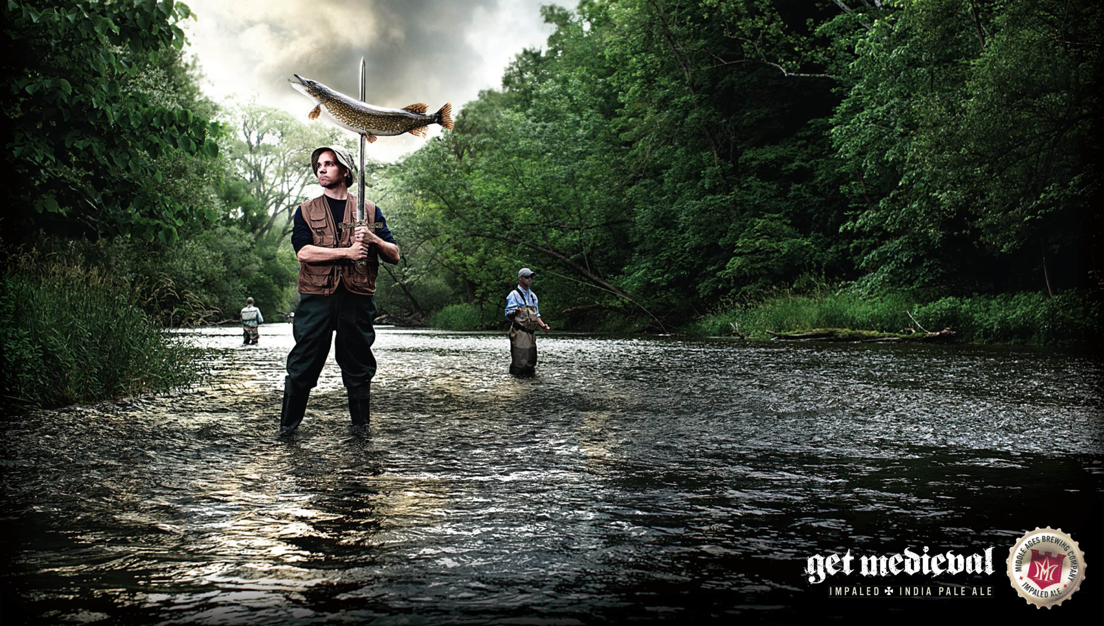 Created for a local, beloved New York microbrewery, the “Get Medieval” advertising campaign positioned Middle Ages beer as a remedy for a modern society that’s a little too easy, a little too mundane, and a little too safe. Each of the four pieces in the print campaign brings one of their themed beers to life in a scenario that merges the modern and the medieval. Through a series of images that came to life as posters, postcards, and environmental graphics in several retail outlets, including a Middle Ages brew pub in a busy New York airport, the campaign reminds us that chivalry isn’t dead and neither are all the dragons in the world.