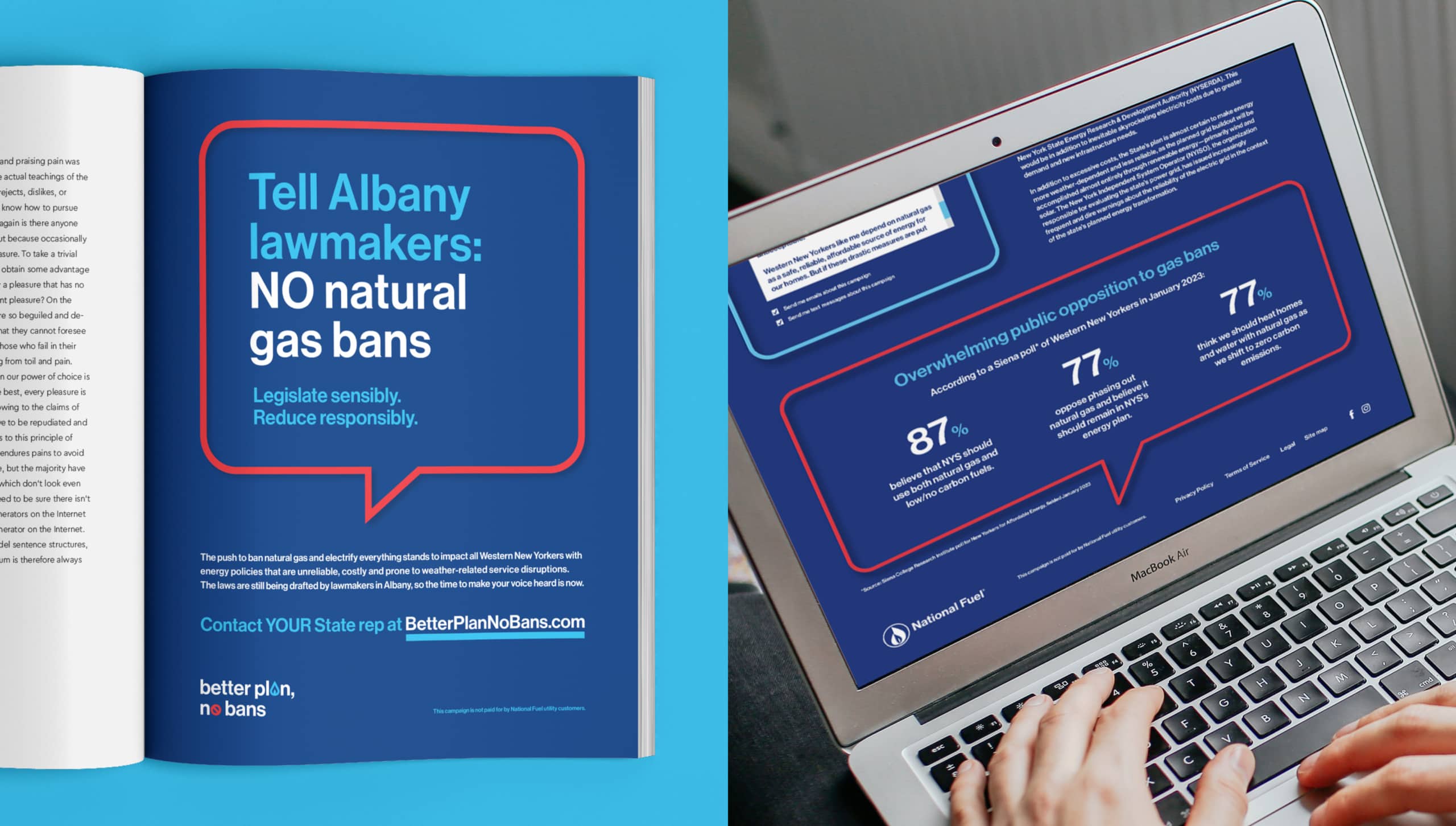 More recently, in 2023 we launched an advertising and public affairs campaign called “Better Plan No Bans,” to educate customers about new proposals to ban natural gas in new and existing buildings, urging them to voice their opinions with elected officials.