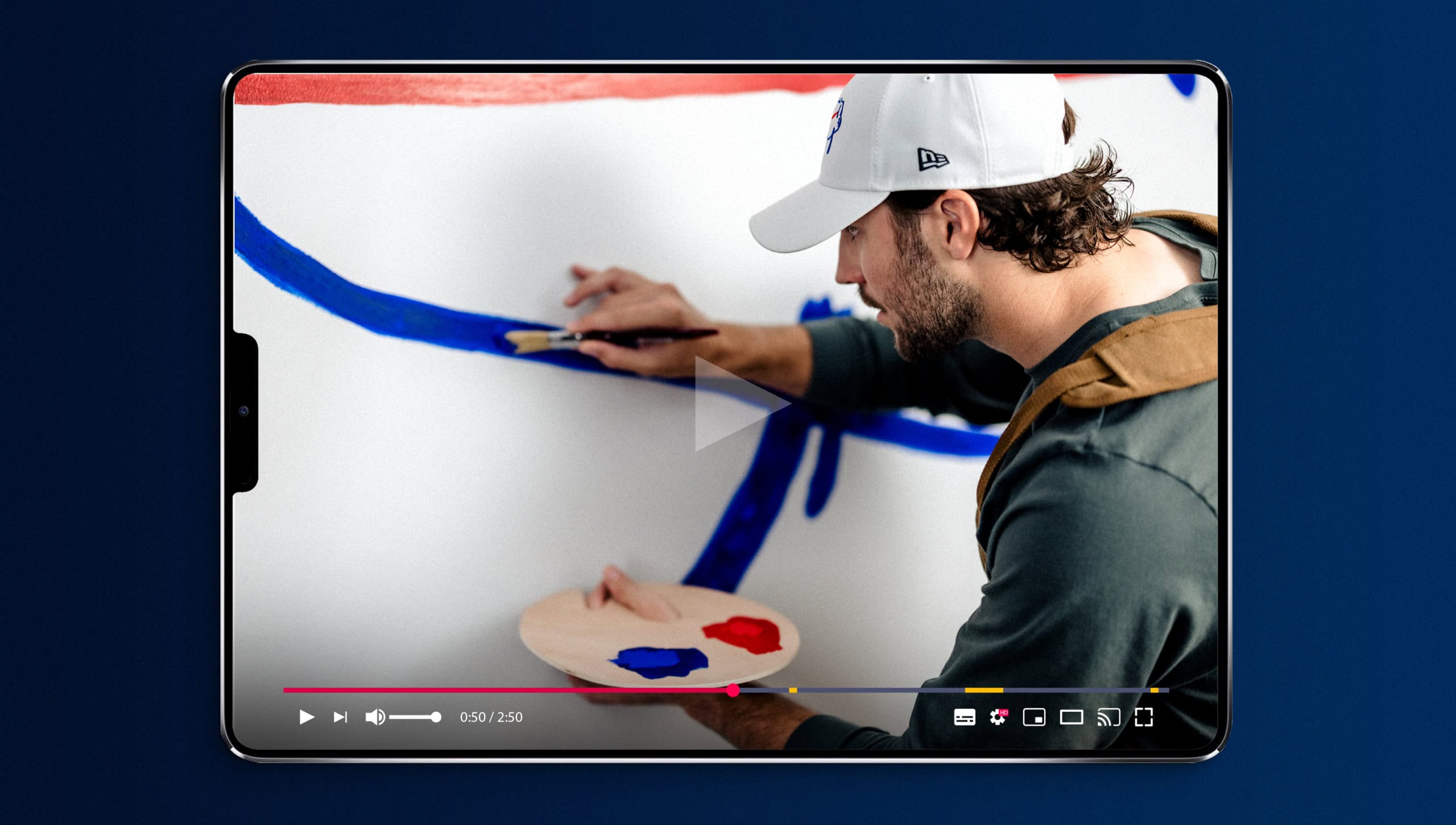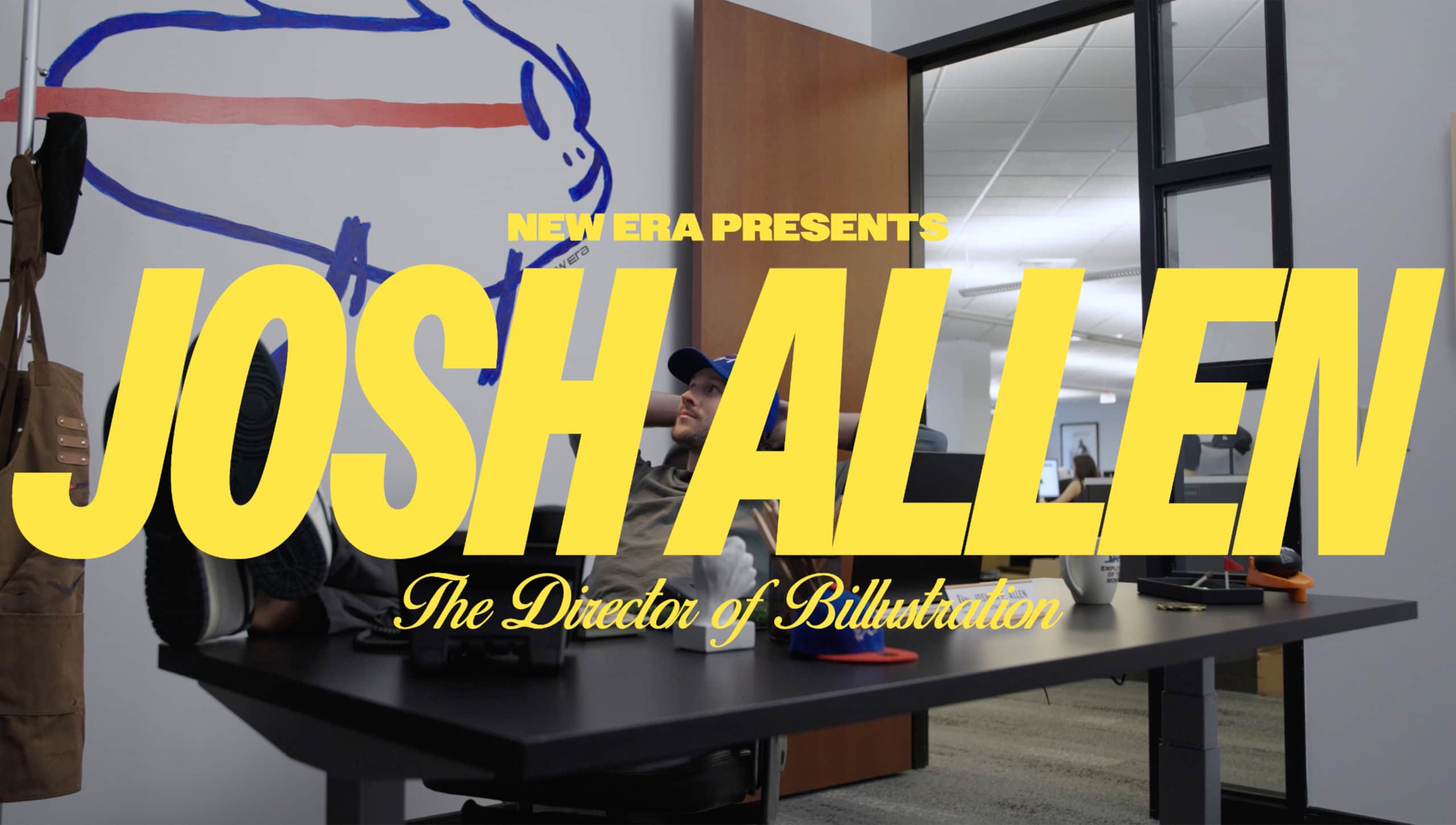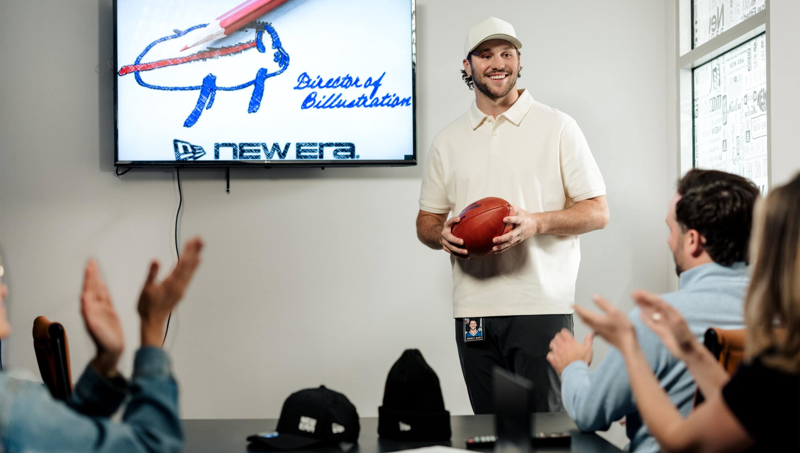 Our creative and production teams got to work developing a format that blended scripted humor with everyday workplace relatability while also ensuring we maximized our two-hour shooting window with Allen. We created short, lighthearted scenarios starring the beloved quarterback to bring his “Director of Billustration” role to life that could be featured separately for ongoing social content. We also held mock interviews with his “bosses” at New Era for an additional comedic layer and to allow us to stitch our scenarios into a longer story for the official announcement video. Between scripting and storyboarding, directing and filming with Buffalo-based cinematographer Torrey Johnson, and post-production, our team owned the process from start to finish—delivering a polished, entertaining announcement video on a lightning-fast timeline.