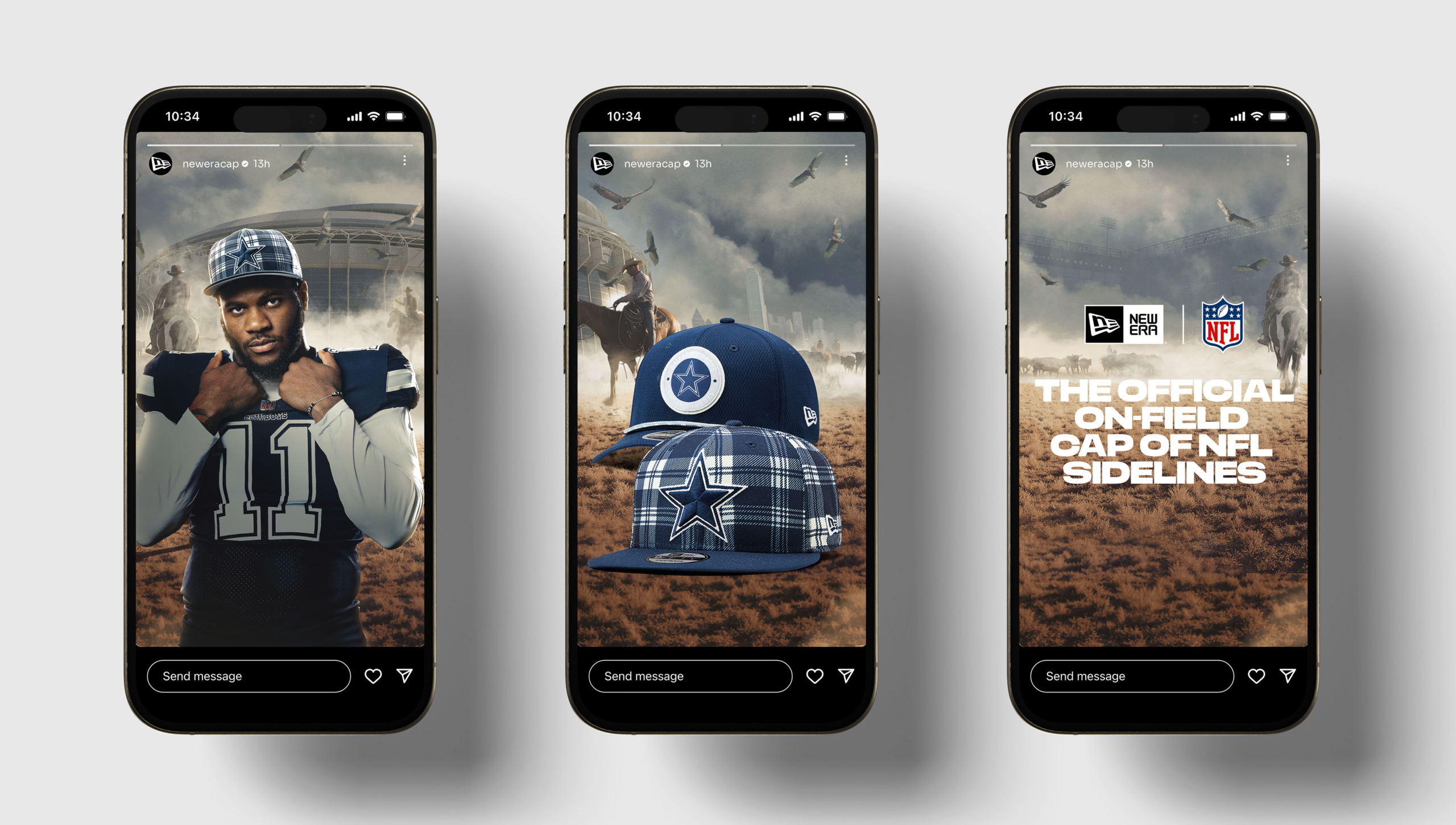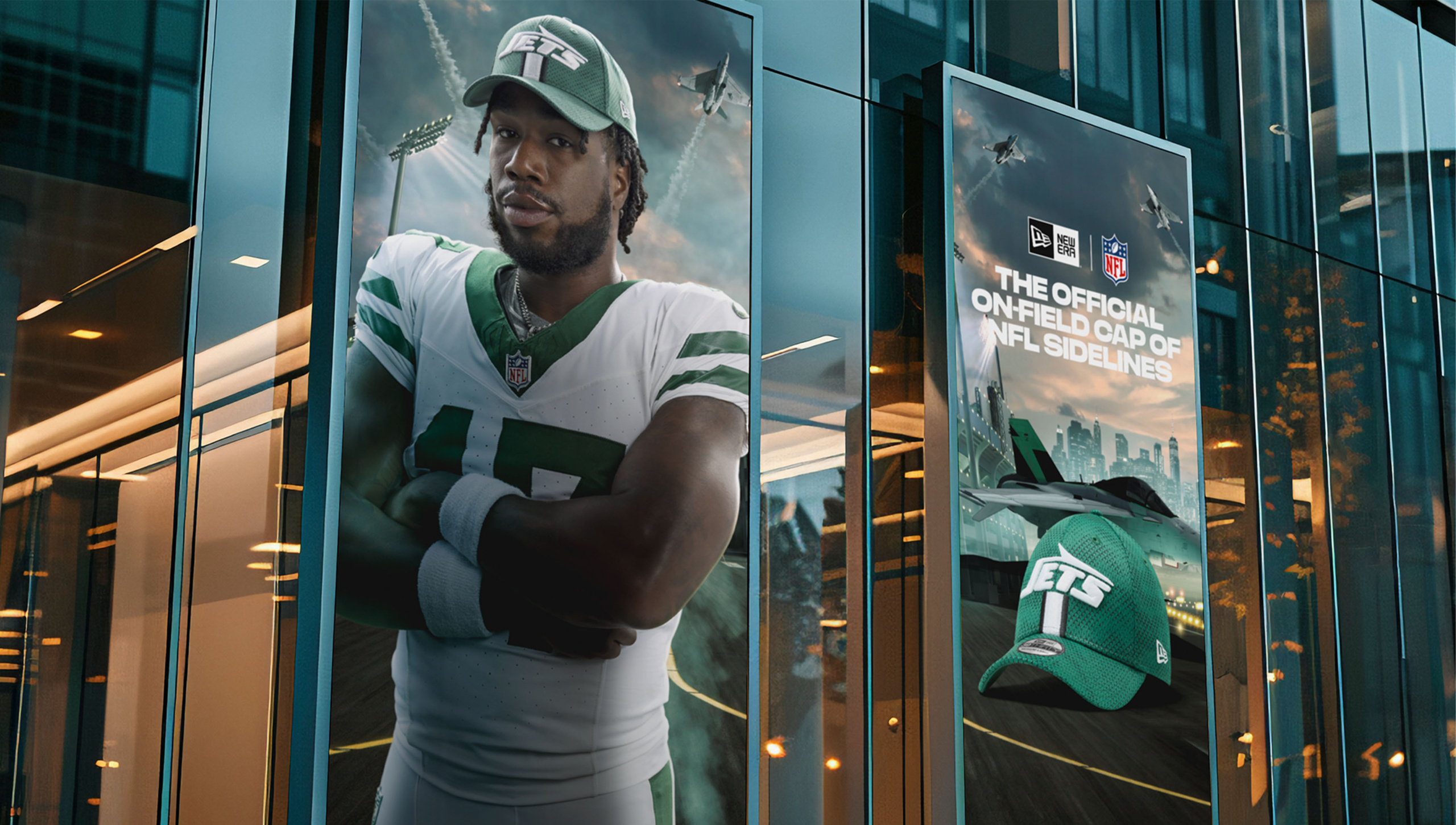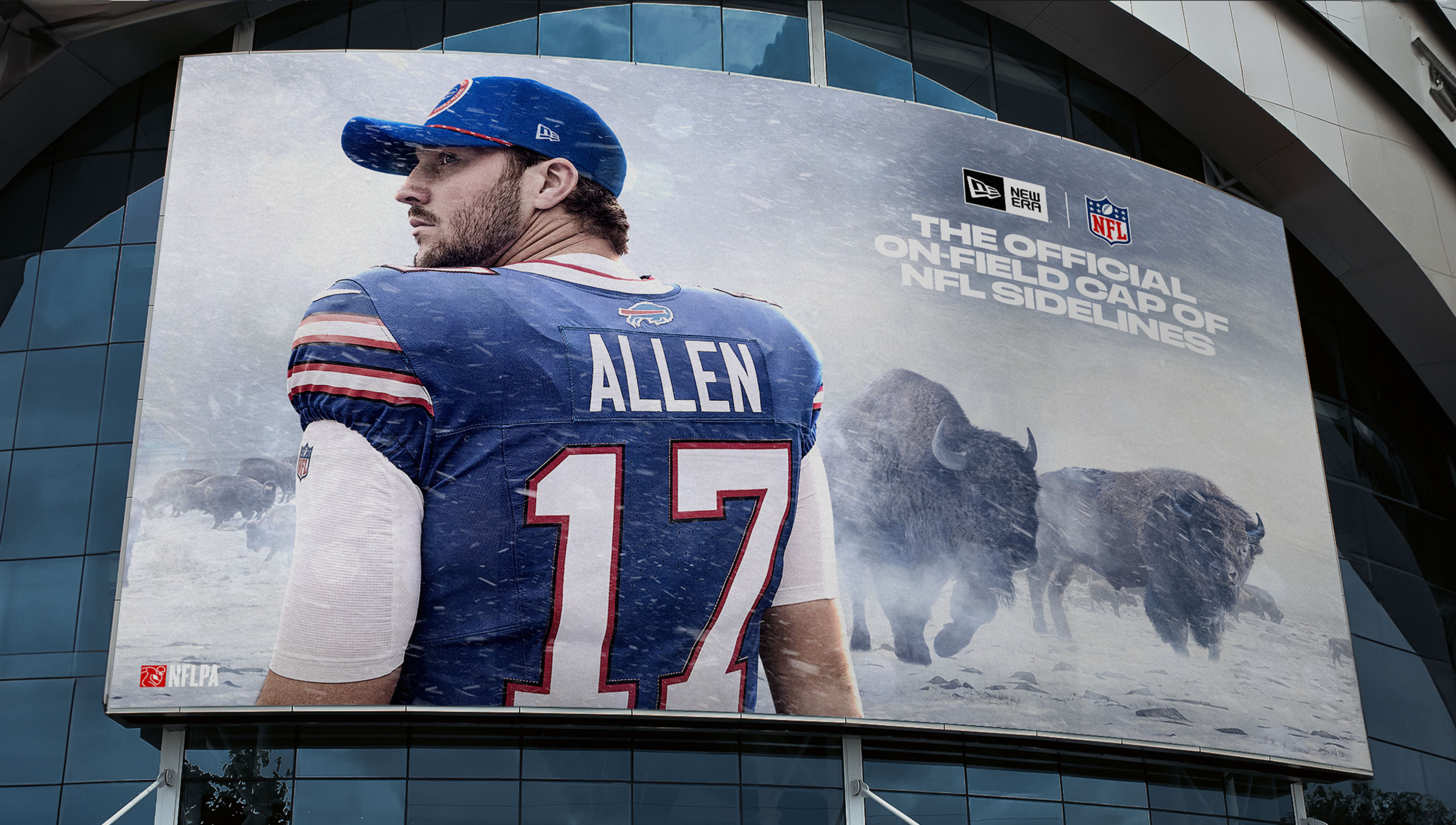 We started with a desire to capture the larger-than-life, often surreal styling of ‘80s and ‘90s sports media. How could we draw inspiration in a way that felt modern and relevant today? That idea led us to experiment with generative AI—using it as a visual springboard to spark epic interpretations of each team’s home environment. A snow-covered tundra filled with buffalo for Buffalo. Cowboys roaming the desert outside AT&T Stadium for Dallas. Fighter jets soaring through the skies for New York. After creating the initial scenes, we partnered with illustrators and designers to refine each environment and place star athletes in the foregrounds, turning them into fully ownable backdrops. The final creative gave New Era a flexible, ownable look for their NFL Sideline campaign, with assets that scaled across athlete content, product showcases, and social rollouts.