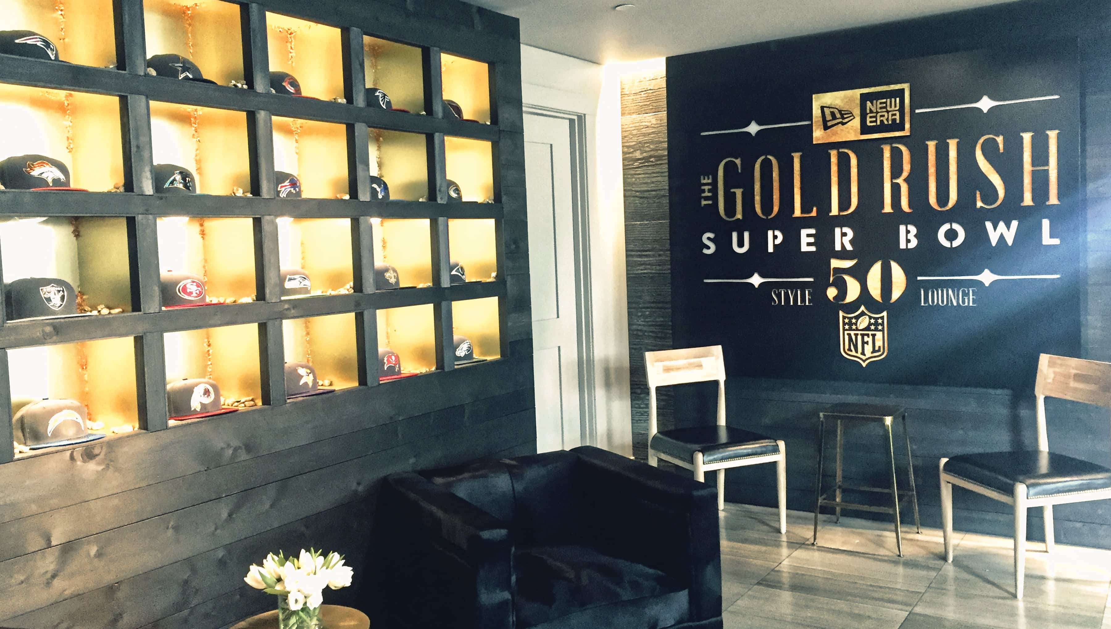 TMG stuck to a gold standard when it came to branding New Era Cap’s Super Bowl Gold Rush Party and Style Lounge event.