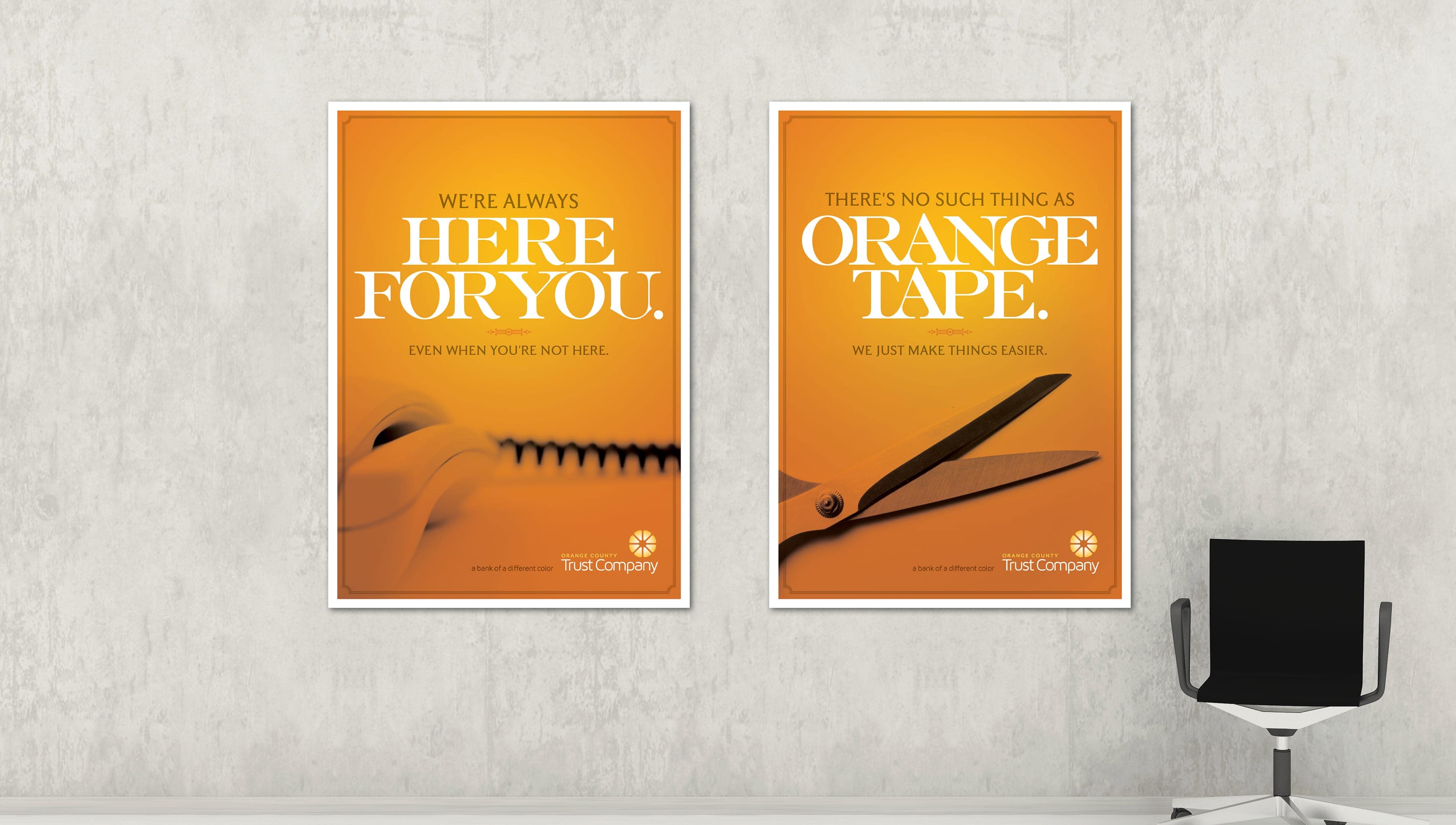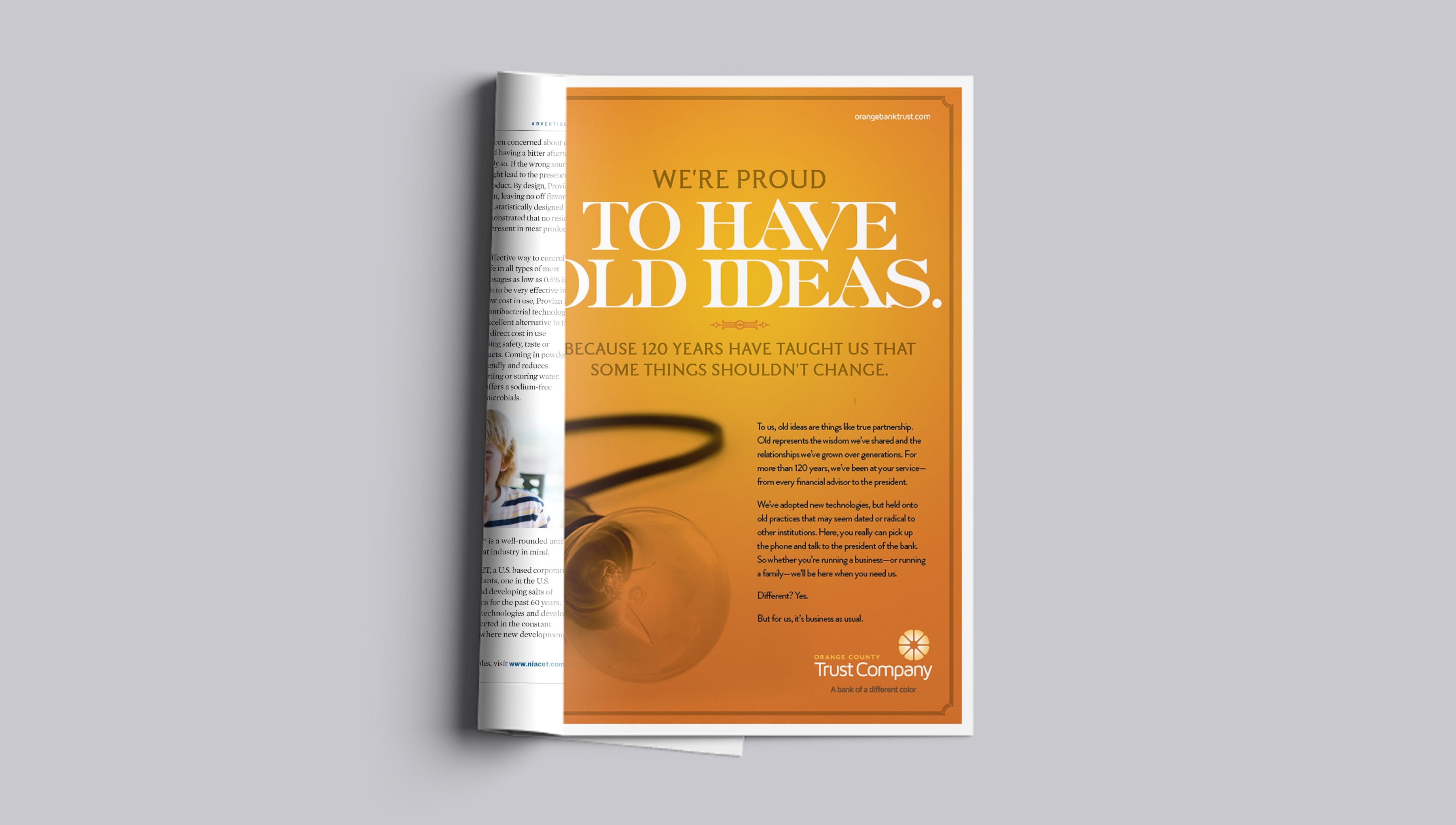 Unfortunately, Orange County Trust Company had minimal to no brand awareness in the new markets it was targeting for growth and had to overcome the perception that it was a small, “sleepy” rural bank with limited resources not capable of the same large and sophisticated business deals as larger banks. To accomplish this, we positioned the bank as a formidable competitor that has the same depth of products and services but outperforms in personal service. We also changed the perception of localized being “less than,” and sold the value of community banking. With an evolved brand identity, including a new logo and tagline of “A bank of a different color,” we launched Orange County Trust in two new markets, underscoring the value of their relationship-based banking with a fresh creative campaign.