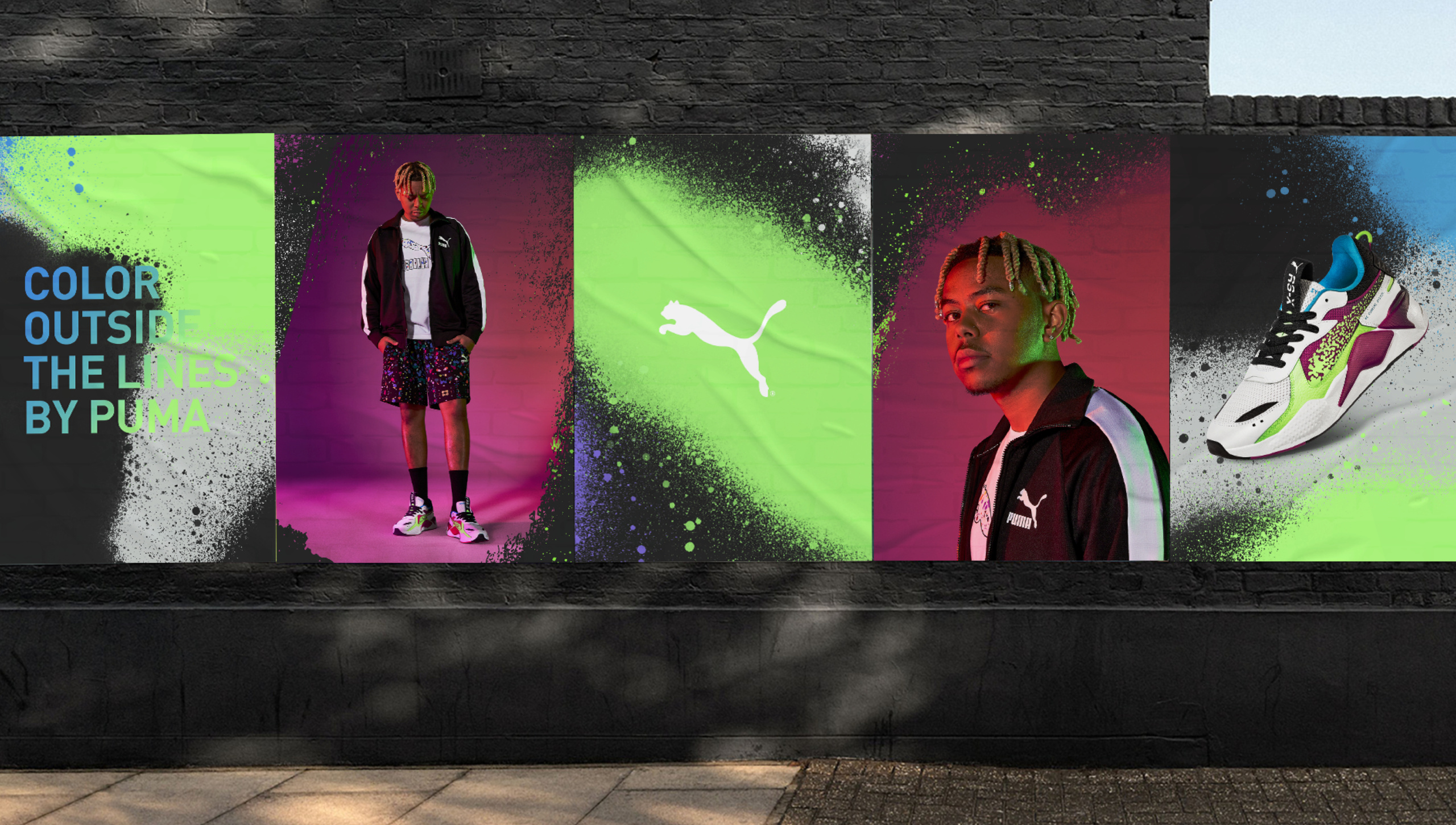 One of PUMA’s defining qualities is their ability to use color in unique ways. This core trait ultimately led to the development of the “Color Outside the Lines” thematic concept centered around new seasonal product drops. And while colors—and the inspirations behind them—are what would bring these product stories to life, there was much more to the thematic than the shoes and apparel themselves. Through the initial brief, our client was able to provide detail into the role color plays in their overall brand story. Mainly, how it is a connective thread that brings together cultural moments and causes, reflects emotion and self-expression, and is never static as it continues to evolve.