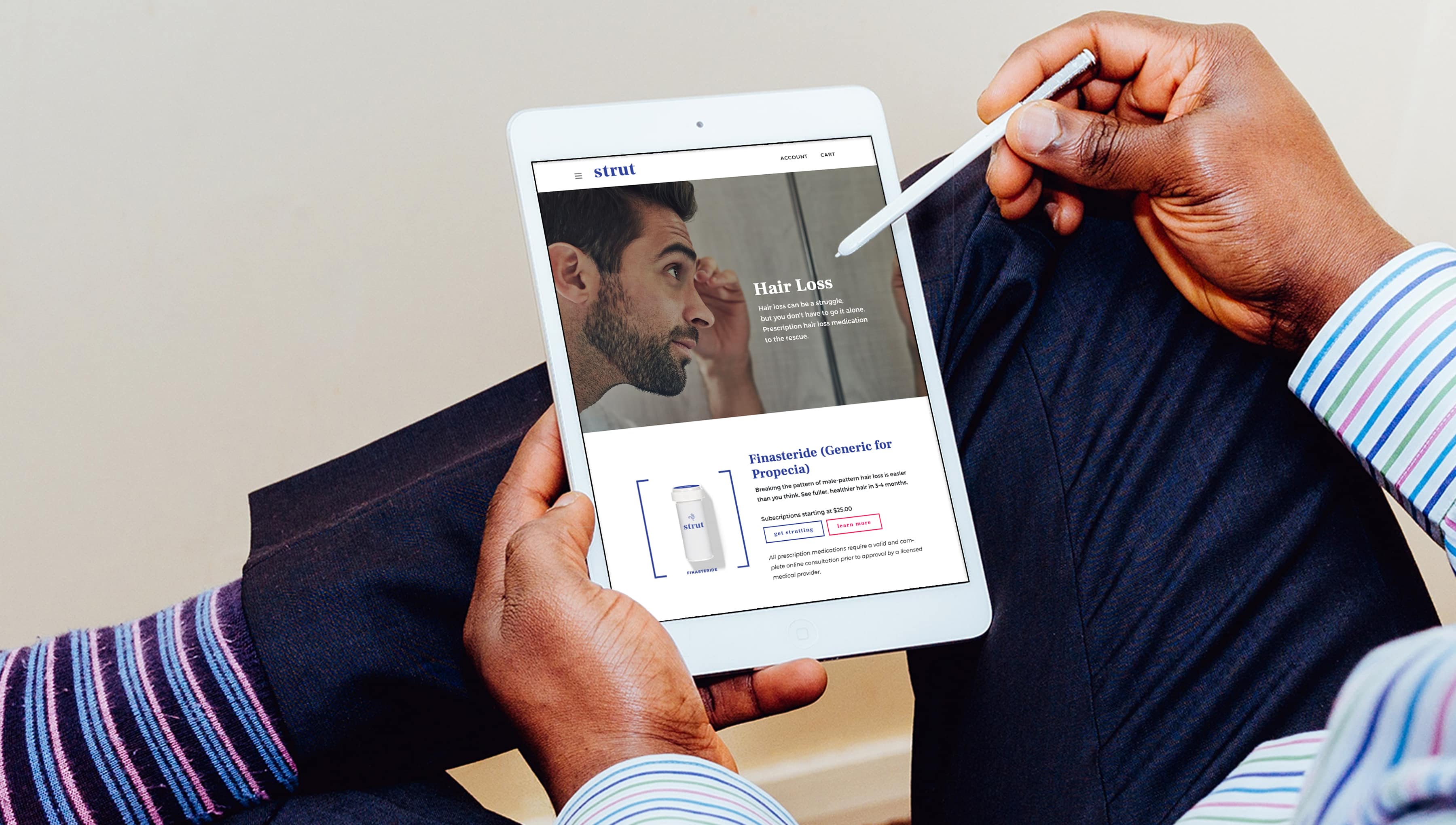 Strut came to The Martin Group as LYFE Wellness, a small startup looking to break into the e-pharma industry, offering products ranging from prescription medications for sexual health and hair loss to those for skin care and nail health. Our team quickly realized that while fast, discreet, and affordable medication was an important selling point, the company was selling something far bigger: a return to confidence and self-expression, unhindered by embarrassing medical conditions.