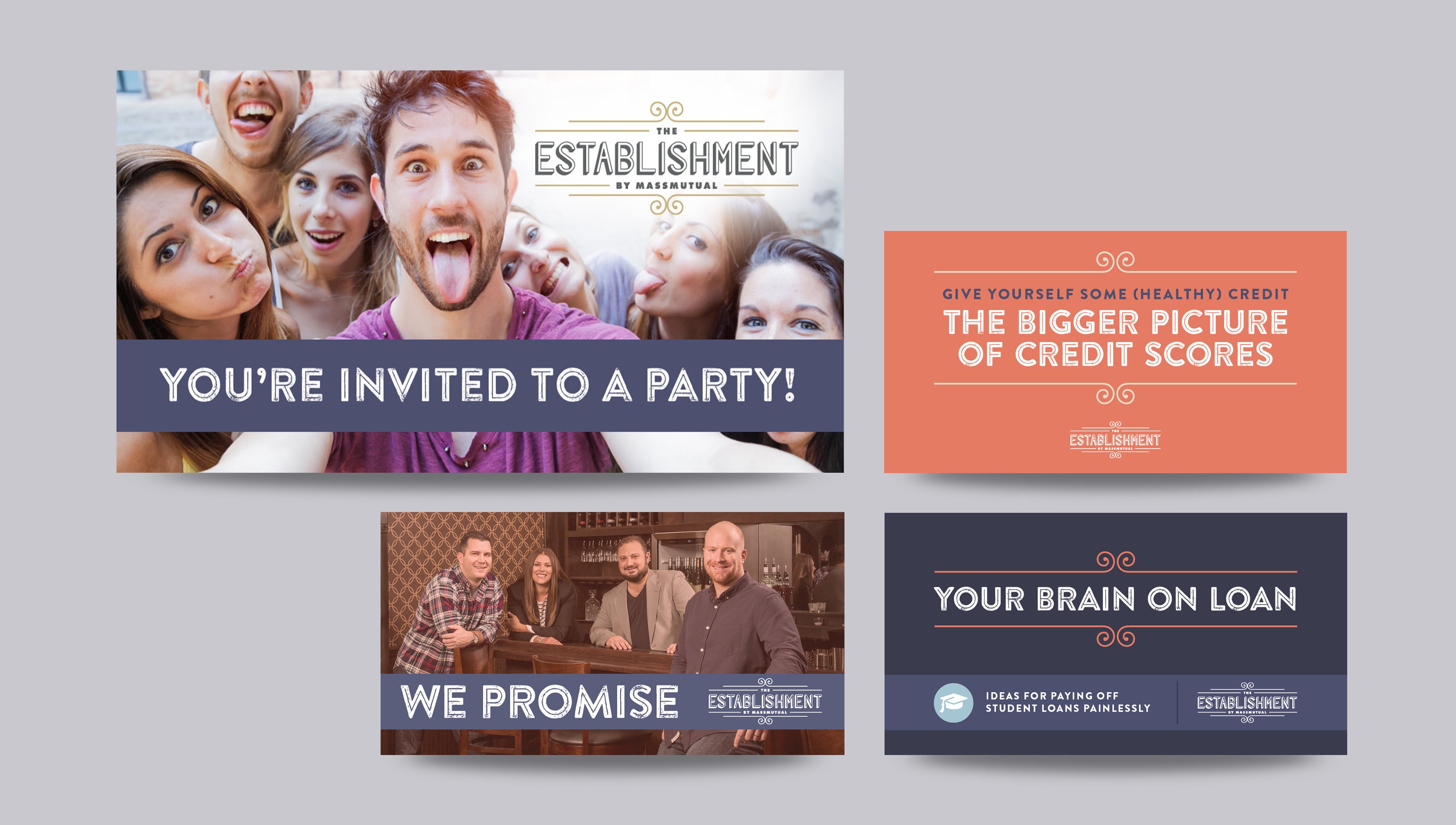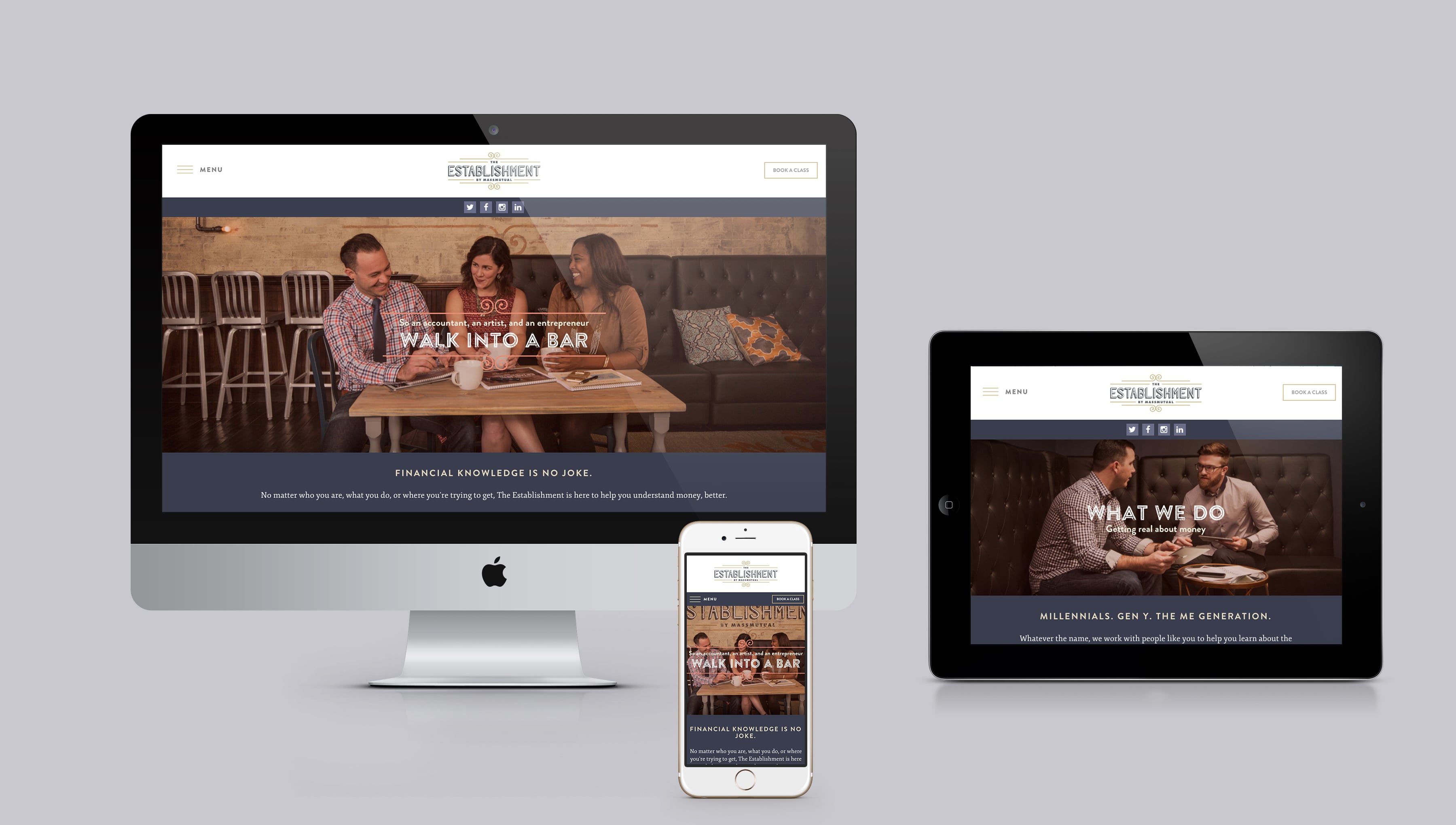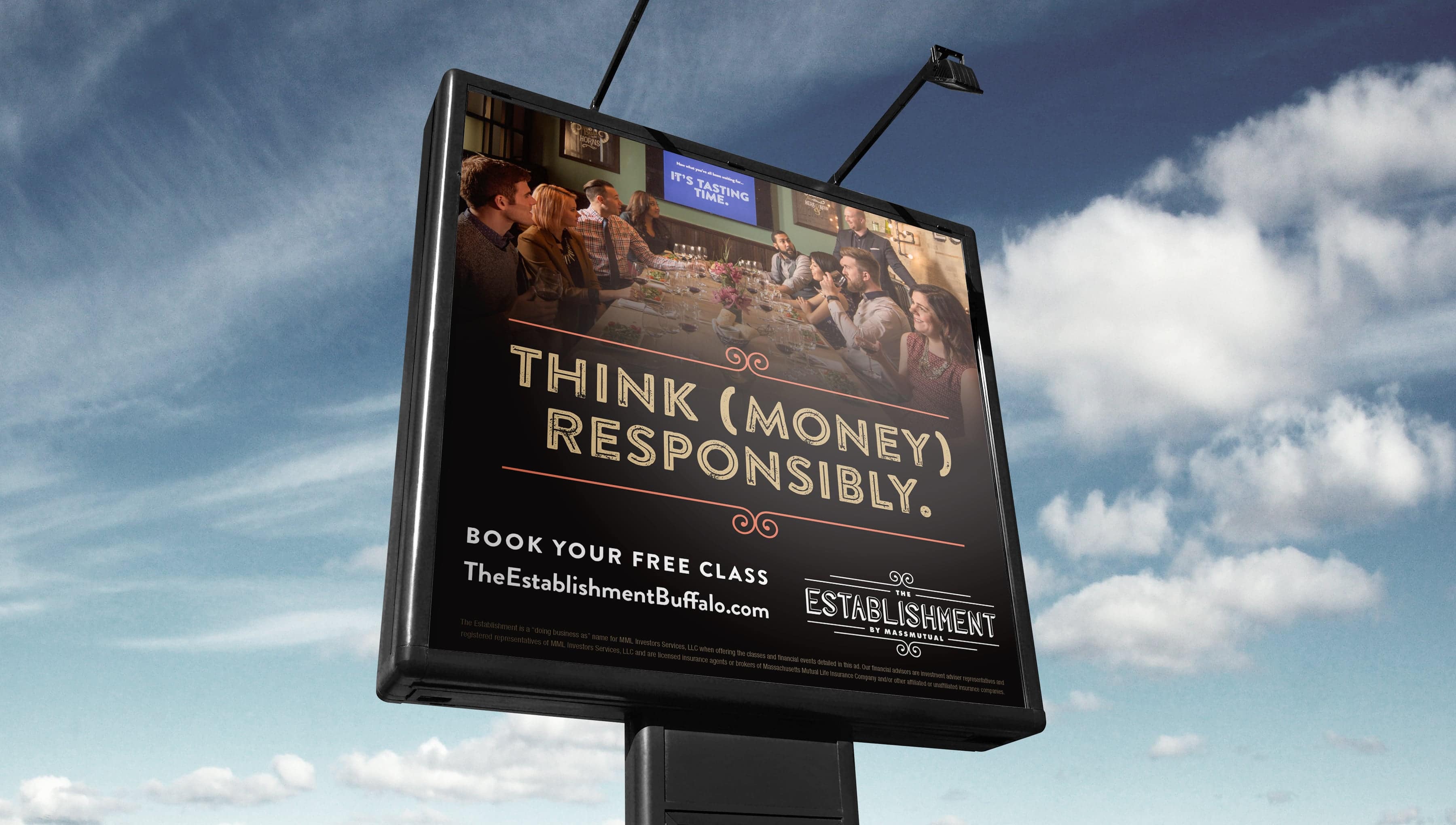 To understand our target audience further, we studied secondary data describing the key characteristics of millennials nationwide. The research helped us hone in on five key points most relevant to our goal of promoting The Establishment: Millennials are the most educated generation to date (34% have a Bachelor’s degree); while they may believe they could “do financial planning themselves,” they either haven’t made time for it or are secretly overwhelmed and intimidated by it; they value “community, family and creativity in their work;” they tend to get married later than previous generations; and they are less likely to be homeowners than young adults in previous generations. Based on these insights, we created a communications strategy that informed all other elements of the brand, including a new logo and “Retiring financial stereotypes” tagline, as well as a responsive website, direct mail pieces, outdoor advertising and social media—all designed to drive potential clients to sign up for financial classes and engage further.